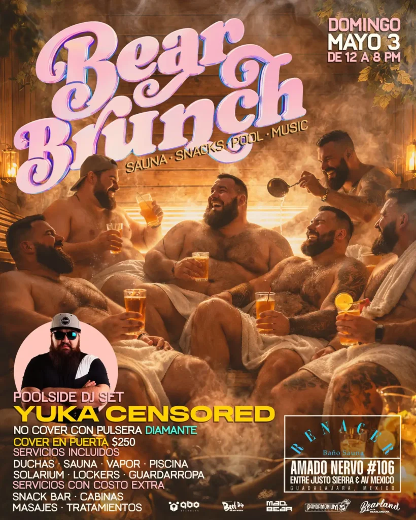 Después de tres noches intensas y antes del gran cierre de Bearland, llega el momento de bajar un poco la velocidad sin perder el ambiente. Bear Brunch – Sauna Party es la experiencia perfecta para disfrutar el domingo con calma, recuperarte, consentirte y seguir conectando con la comunidad en un ambiente más relajado, sensual y confortable.